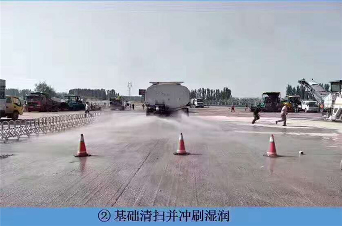 3、水润;用水冲刷干净后应将水保留在作业面一段时间,将作业面充分湿润,直至不再渗水为止(观察没有气泡冒出)施工时保持作业面湿润状态,但不能有积水。